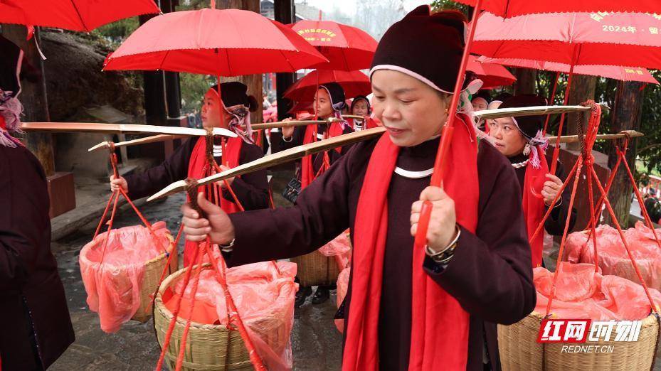 随着侗寨锣鼓声声,身着盛装的村民们开始游寨。他们手持农具、肩担丰收,怀着美好的祈愿沿着侗寨街巷缓步前行,一路欢声笑语。队伍汇聚在老寨河滩两棵古杉树下,开始举行庄重的祭祀仪式,两位德高望重的年长者,手拿文书祭祀讲款,寄托对新年风调雨顺、五谷丰登的美好期盼。