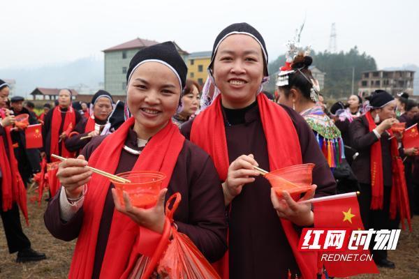 村民们有序地摆好碗筷,舀起一碗碗热乎的汤,就着热气腾腾的烟火气话家常、叙乡情,众人跳起多嘎多耶,歌声与笑声交织,暖意融融。
